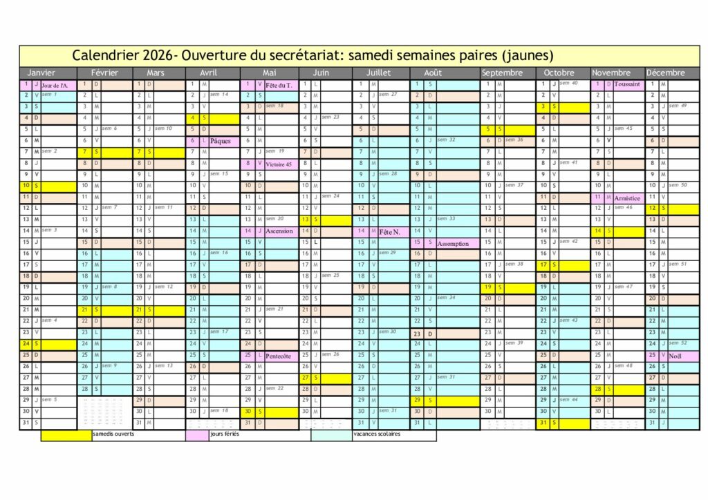 Samedi (paire) : 9h – 12h
